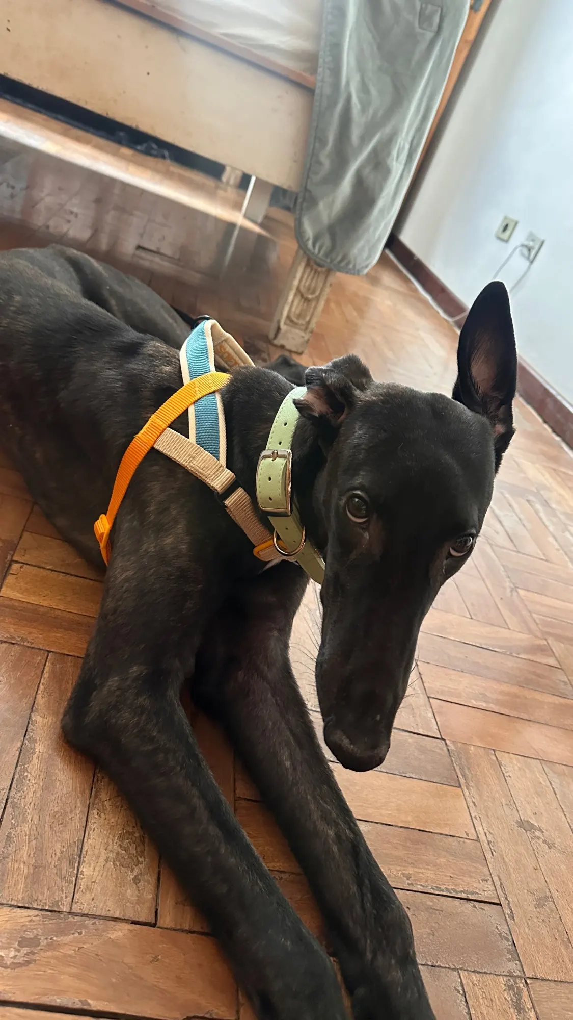 Il est arrivé plus vite que prévu. J'ai acheté la taille M pour mon lévrier anglais, je l'ai trouvé un peu fin, mais c'est bien.